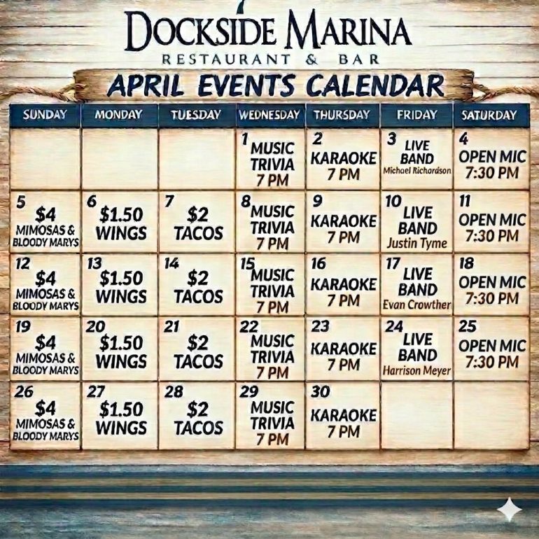 Dockside Marina April Schedule